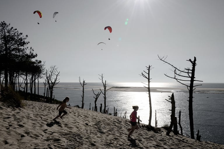 ... und auf der über hundert meter hohen dune du pilat an der französischen atlantikküste betrat ich eine andere, fast unwirklich anmutende kleine welt, einen filmset fellinis, einen surrealen kleinen kosmos, wo unzählige szenen gleichzeitig und nebeneinander existierten.