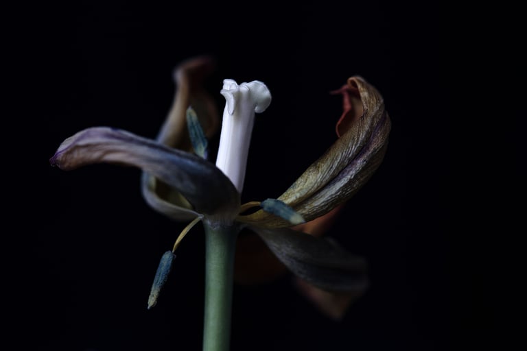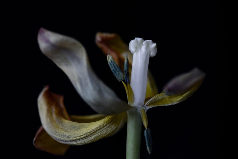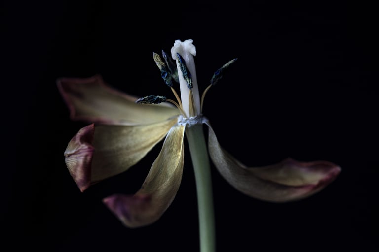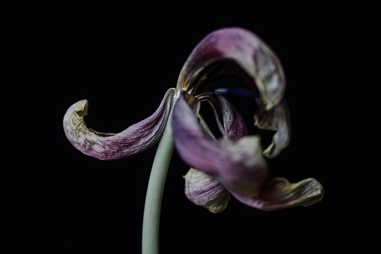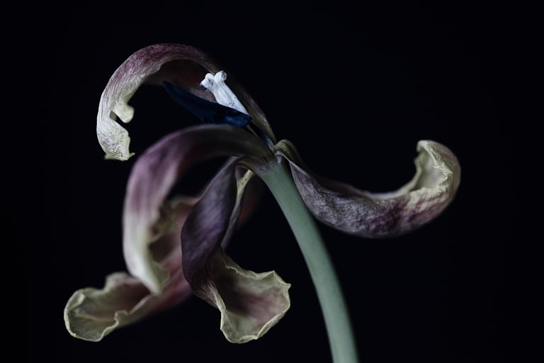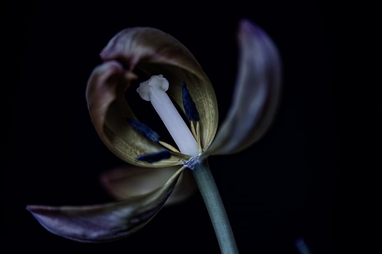 meine still life bilder stammen aus verschiedenen serien.sie sind portraits des werdens und vergehens. sie zeigen die schönheit des erwachens und des letzten tanzes, bevor die blütenblätter fallen.